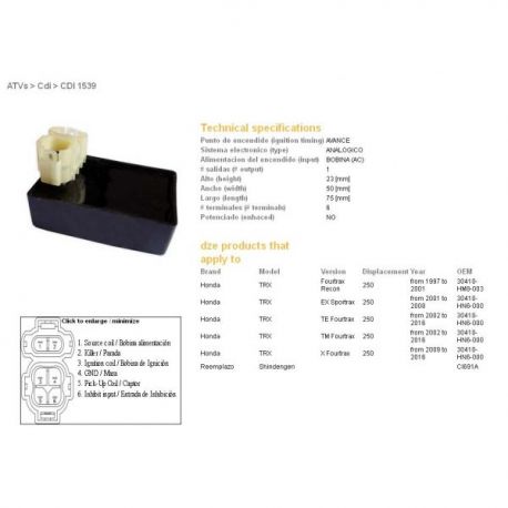 DZE, jednotka zapalování CDI, Honda TRX250 RECON 97-01 (30410-HM8-003)