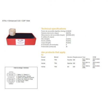 DZE, jednotka zapalování CDI, Honda TRX300 FOURTRAX 93-00, EX 93-06, SPORTRAX 01-05