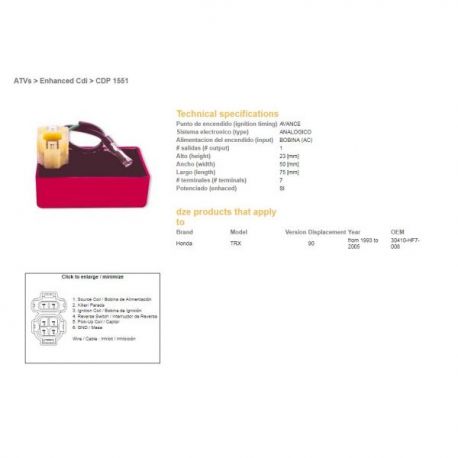 DZE, jednotka zapalování CDI, Honda TRX 90 '93-'05 (30410-HF7-008)