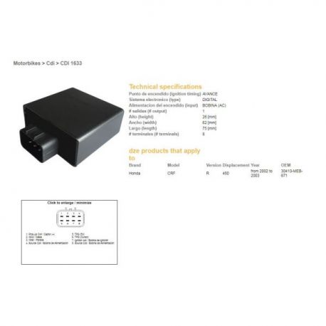 DZE, jednotka zapalování CDI, Honda CRF 450R '02-03 (30410-MEB-671)