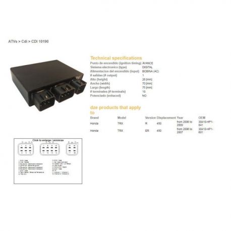 DZE, jednotka zapalování (CDI), Honda TRX 450R 06-10 (OEM-30410-HP1-841)