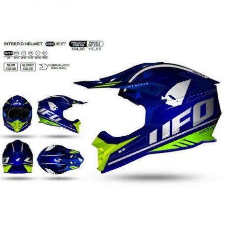 UFO (kolekce 2023), MX přilba Interpid, barva modrá - žlutá fluo, velikost M