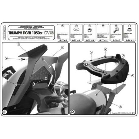 Kappa, nosič centrálního kufru, TRIUMPH TIGER 1050 (07-12) (s plotnou Monokey)