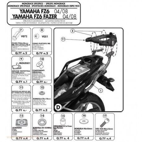 Kappa, nosič centrálního kufru, Yamaha FZ6 / FZS 600 FAZER (04-06), FZ6 S2 / FZ6 600 FAZER S2 (07-11) (bez plotny)
