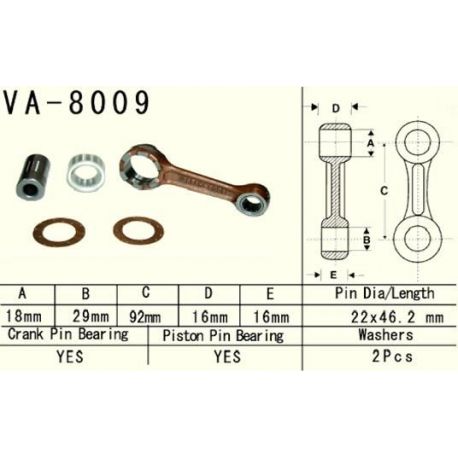 Vesrah, ojniční sada Kawasaki KX 80 (KX80) '98-'17, KX 85 (KX85) '98-'17, KX100 (KX100) '98-'19 (VA8009) (MADE IN JAPAN)