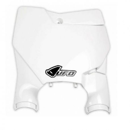 UFO, přední číslová tabulka, KTM SX/SXF '16-'20 (s vyjímkou SX 250 '16) bílá barva (s kryty přední vidlice)