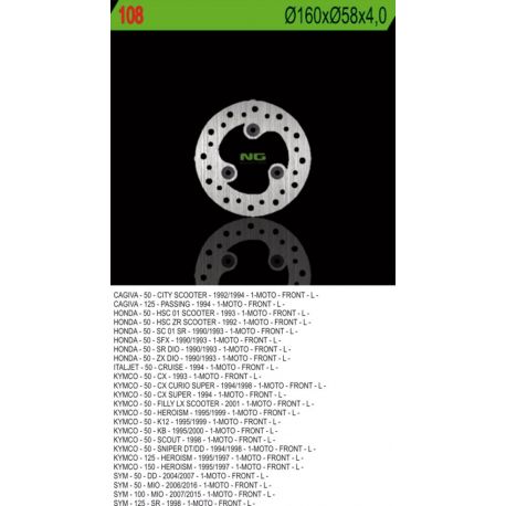 NG, přední brzdový kotouč, Cagiva/Honda/KYMCO/SYM (160X58X4) (3X10,5mm)