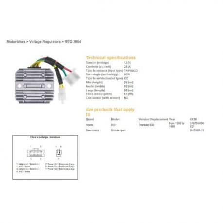 DZE, regulator napětí, Honda XL 600 V TRANSALP 91-99 (SH 538D-13,ESR640,RGU-144)