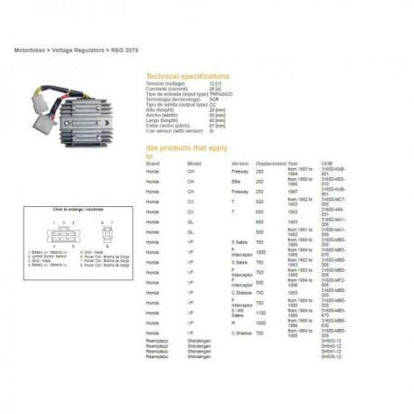 DZE, regulator napětí, Honda CX500/650, GL500/650, VF750/1000, VF1100S (SH541-12) (ESR650,ESR749,RGU-103)