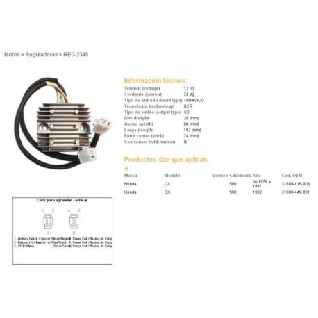 DZE, regulator napětí, Honda CX500 78-82, CX500 TURBO (31600-415-008, 31600-449-831) (ESR160)