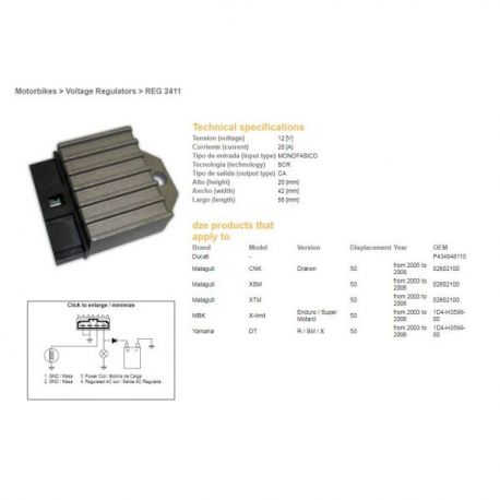 DZE, regulator napětí, KTM, Yamaha DT 50 R/SM/X '03-'06, MBK 50, MALAGUTI XSM 50 (1D4-H3598-00)