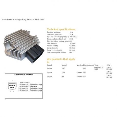 DZE, regulator napětí, Honda CBF250 04-07 (31600-KPF-961)