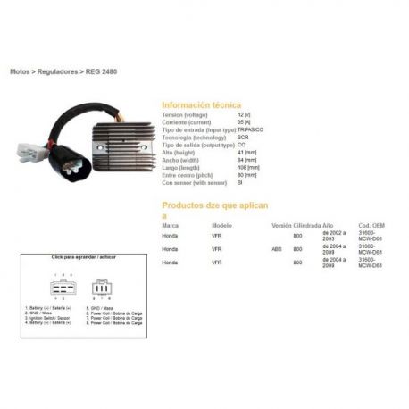 DZE, regulator napětí, Honda VFR800 02-09 (35A) (31600-MCW-D61) (ESR438)