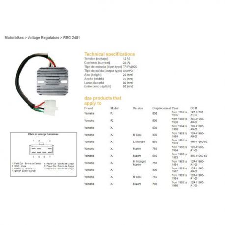 DZE, regulator napětí, Yamaha XJ 550/600/650/750/900 '80-'89 (12R-81960-A1-00, 4H7-81960-50, 3G1-81960-A0-00) (ESR320)