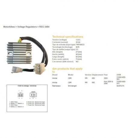 DZE, regulator napětí, Honda CBR600RR '03-'06 (SH678-FA) (31600-MEE-872)