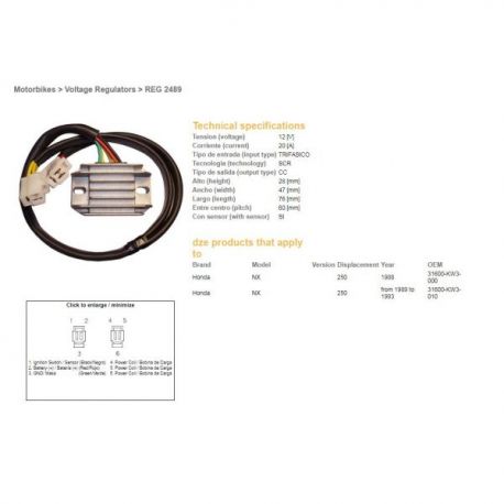 DZE, regulator napětí, Honda NX250 '88-93 (31600-KW3-000, 31600-KW3-010)