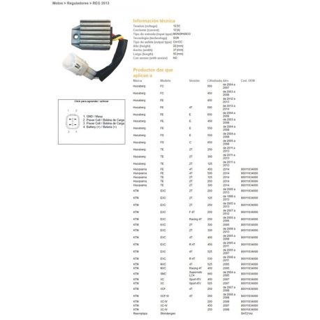 DZE, regulator napětí, KTM EXC 125 98-13, EXC200/250/300 05-13, EXC250/400/450/525/530 05-11 (80011034000) (12V/12A) (801103400)