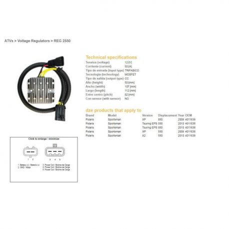 DZE, regulator napětí, Polaris SPORTSMAN 550 '09-'10, 850 '09-'10 (40111636) MOSFET - 50A