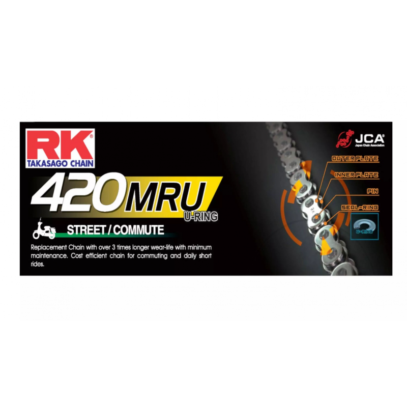 RK, řetěz 420MRU-142 (U-RING), spojka v balení, barva neutral