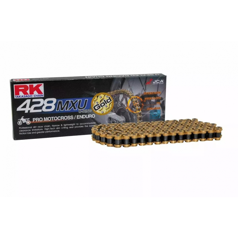 RK, řetěz (Enduro) GB428MXU-136 (U-RING), spojka v balení, zlatá barva