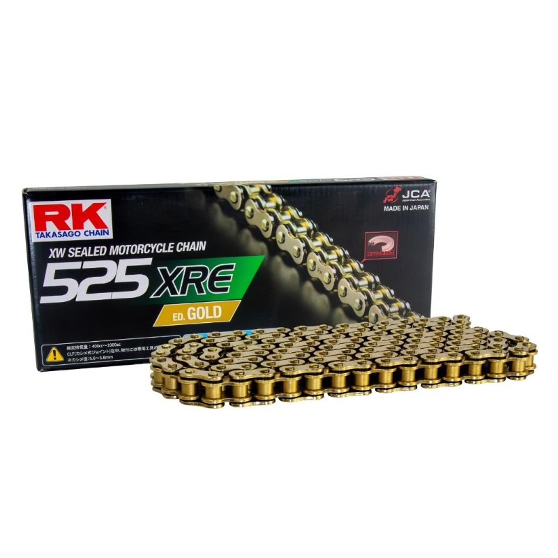RK, řetěz GB525XRE-118 (XW-RING), nýtovací spojka v balení, zlatá barva