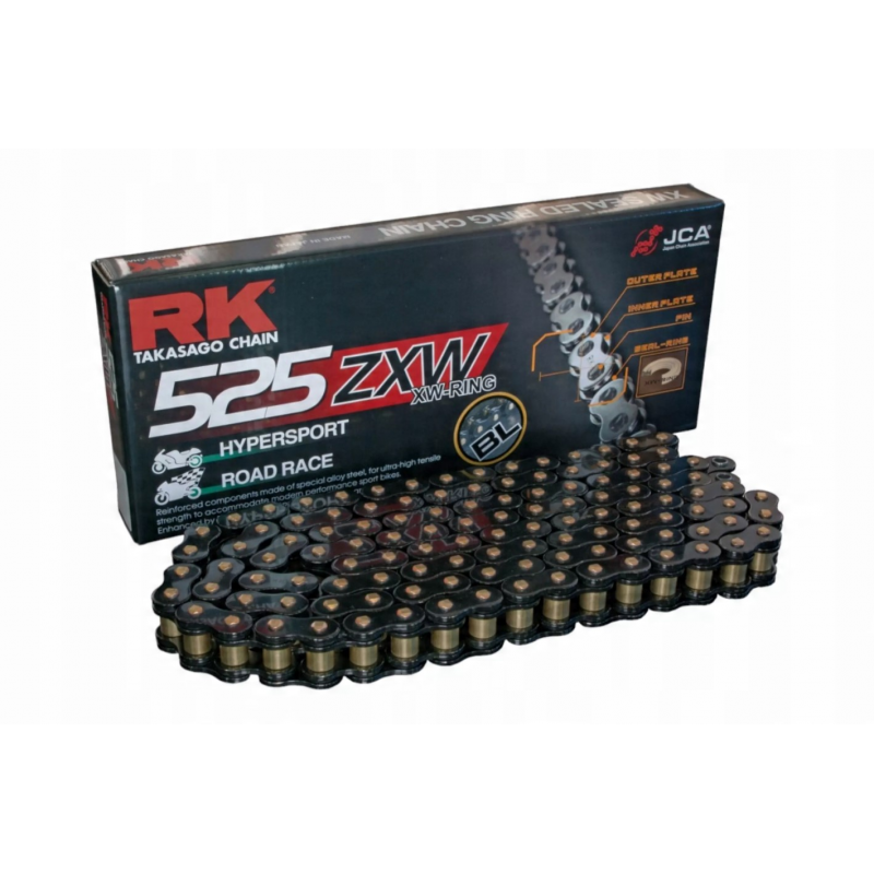 RK, řetěz BL525ZXW-120 (XW-RING), nýtovací spojka v balení,, černá barva
