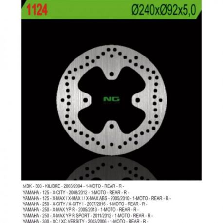 NG, zadní brzdový kotouč, Yamaha X-CITY 125 08-12, 250 07-17, X-MAX 125/250 05-09 (240X92X5) (4X8,5mm)
