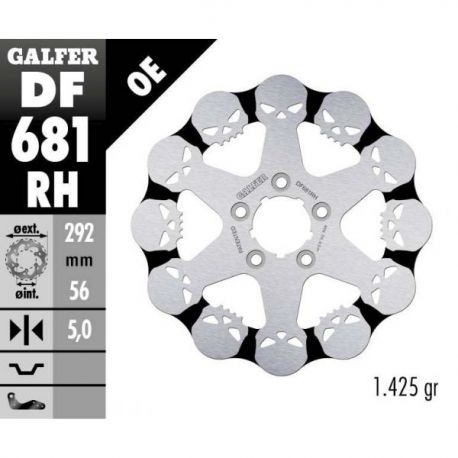 Galfer, zadní brzdový kotouč Harley-Davidson (292X56X5) SKULL (vzor-lebky)
