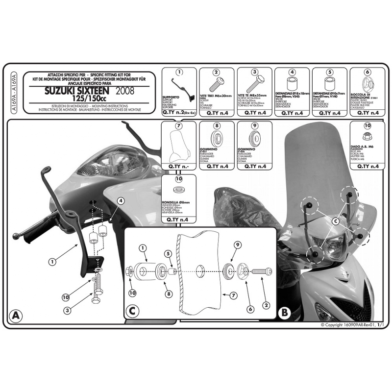 Kappa, montážní sada plexi, Suzuki SIXTEEN 125-150 (08-12)