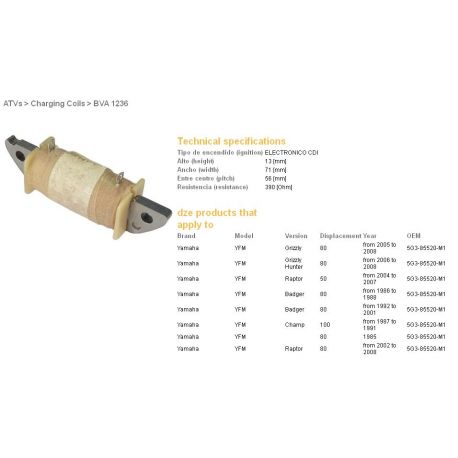 DZE, cívka statoru, Yamaha YFM 80 Raptor/Grizzly '02-'08 (5G3-85520-M1) (390 OHM)