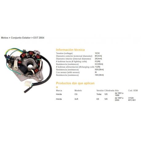 DZE, stator, Honda XLR125 97-00, CG125 91-98 (OEM-31120-KFC-901)