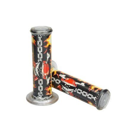 Harri's, gripy 01684-RA (120 mm/22 mm) bez otvoru, Lebky , barva černá/žlutá/červená