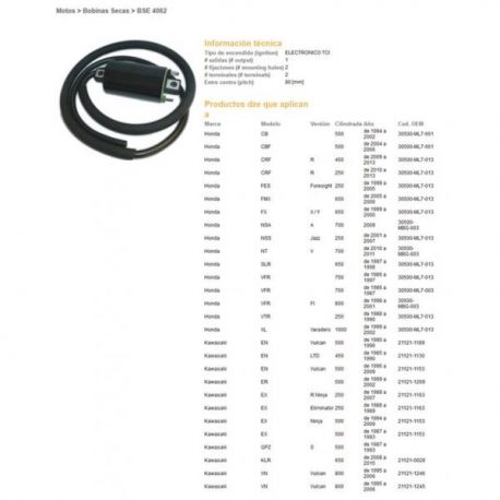 DZE, indukční cívka, Honda CRF250R 10-13, CRF450R 09-13, CBF500, Kawasaki, Yamaha XT600 '90-'97, XV125/250, TDM