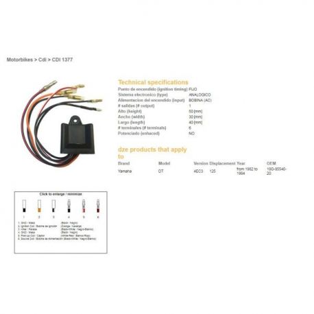DZE, jednotka zapalování CDI, Yamaha DT125 '82-'94 (OEM-18G-85540-20)