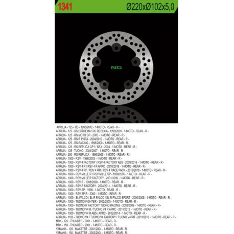 NG, zadní brzdový kotouč, Aprilia RS 125, TUONO 1000, RSV 1000 (220X102X5 5 otvorů)